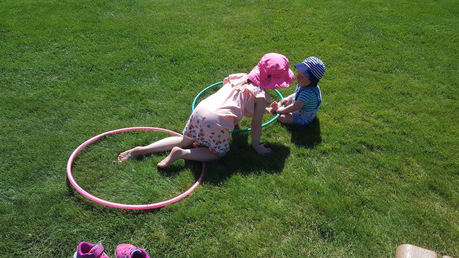 Saturday we went to a park on the nearby resort. The guys decided to play frisbee golf. I didn't want to carry a baby around for 9 holes (the baskets were 300+ feet apart...yuck) so Laura and I hung out near the big toy and waited for them to finish. I am loving each new stage with Emmett, but part of me wants him to get big already so he can keep up with his cousins! Clara is sooo cute with Emmett - she plays with him and says "hello little boy" in her adorable 4 year old voice! Eleanor is a different story - she's not so fond of her cousin yet (he's been pinched and slapped a few times - lol!) but one day I'm sure they'll be BFFs. That afternoon we tried the lake and it was a pretty big fail...the water was just terribly cold, and the "beach" (really rocky, lots of downed trees, sticks, etc in the way) was overly crowded with some serious white-trash people. I'm sorry but there's just no getting around it! Lots of pot smoking, drinking, and blaring music ... we let Jackson swim around a big but he was just too much energy with too many people. Papa Jon, Judy, and Joe made burgers for dinner with ice cream for dessert. We ate amazing food all week! We had a few team and individual challenges all along the way.