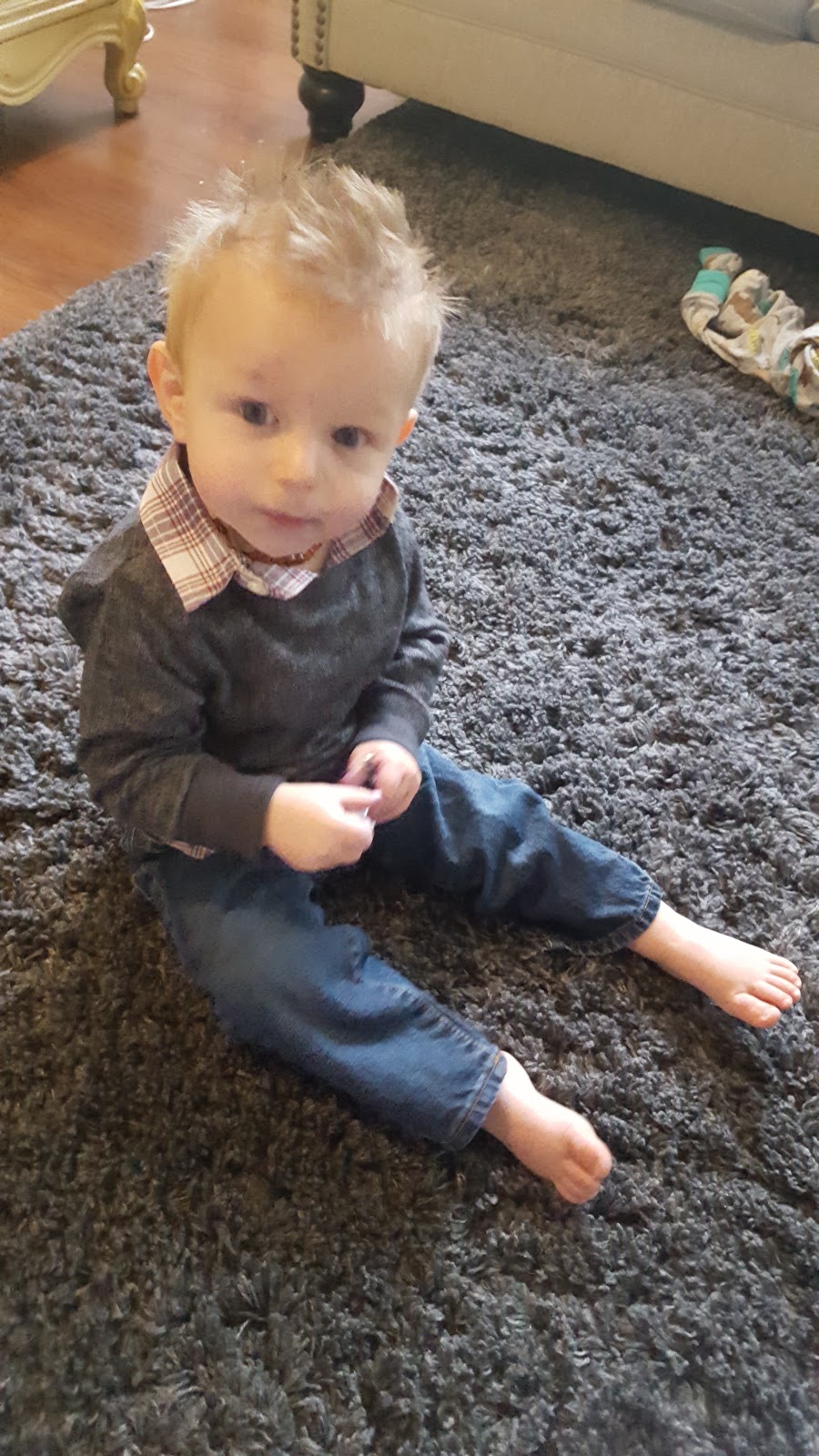 When he is wanting something and we don't know what we can sign to him "what/where" and he will point to what he wants. He is getting better at his climbing skills. I'm not looking forward to when he can get himself up on the kitchen table... he loves to sit next to Justin or me when we are playing the piano and bang away at the keys.